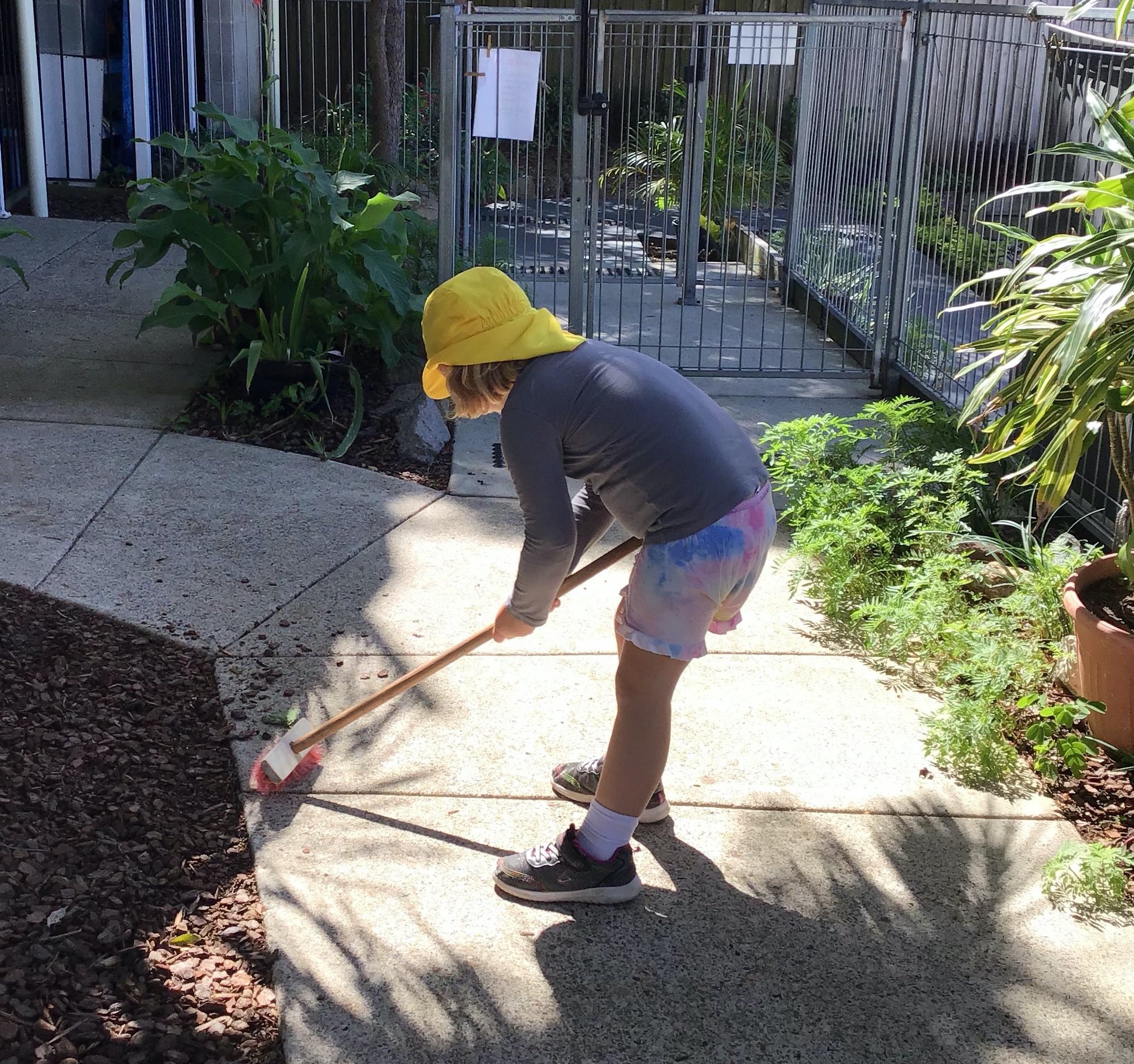 As a part of the Montessori philosophy, there will be certain practical life works in the quiet area sometimes as well. For example, children will have a chance to brush the concrete path or water the plants in our lovely garden.