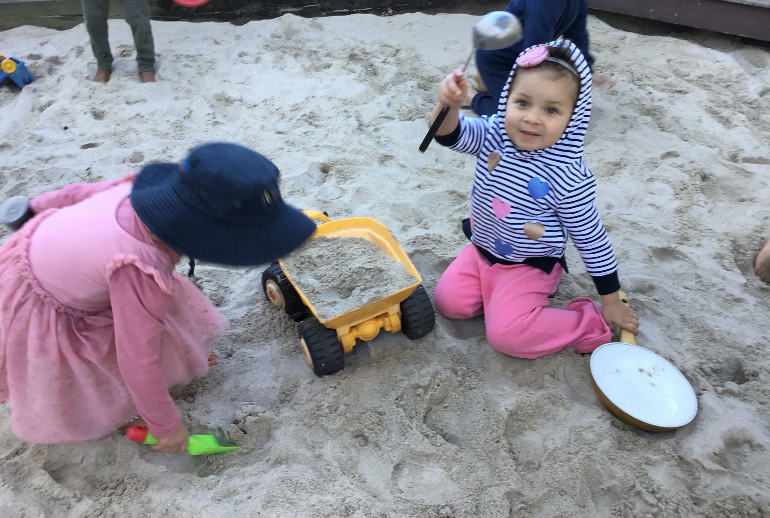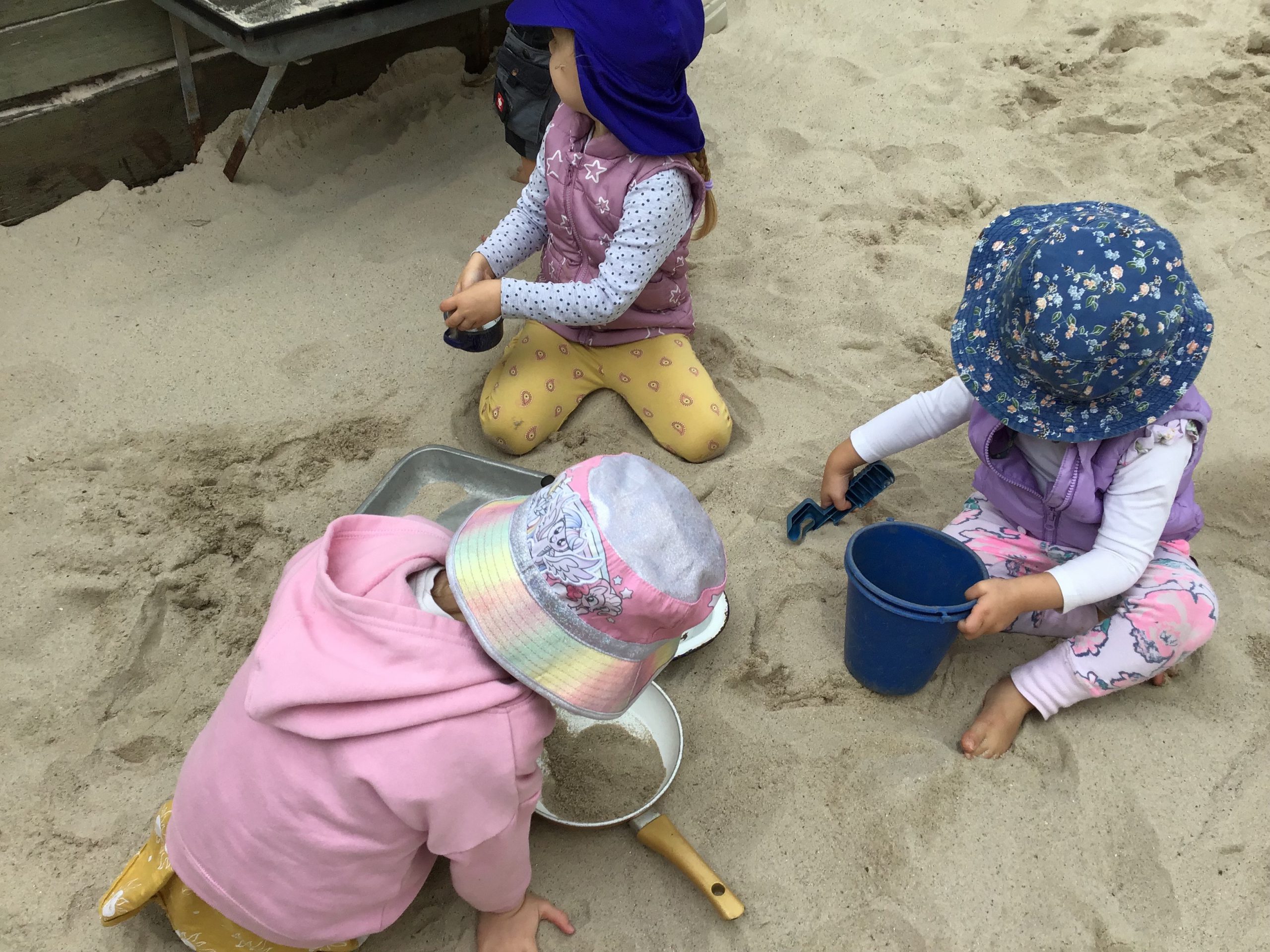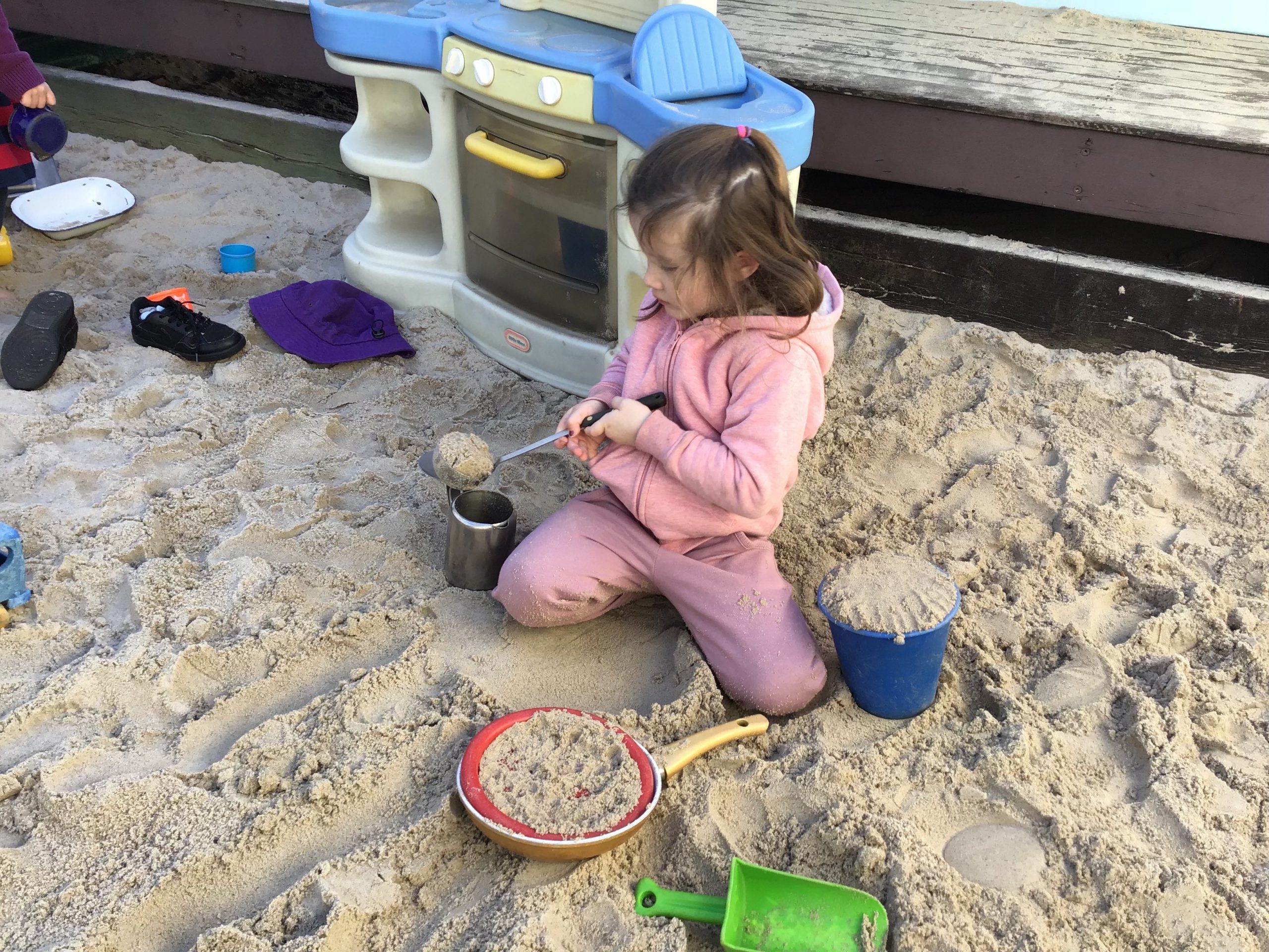 With different equipment and tools, children own the freedom to choose their own activities, such as building sandcastles, pretend cooking, and playing with trucks.