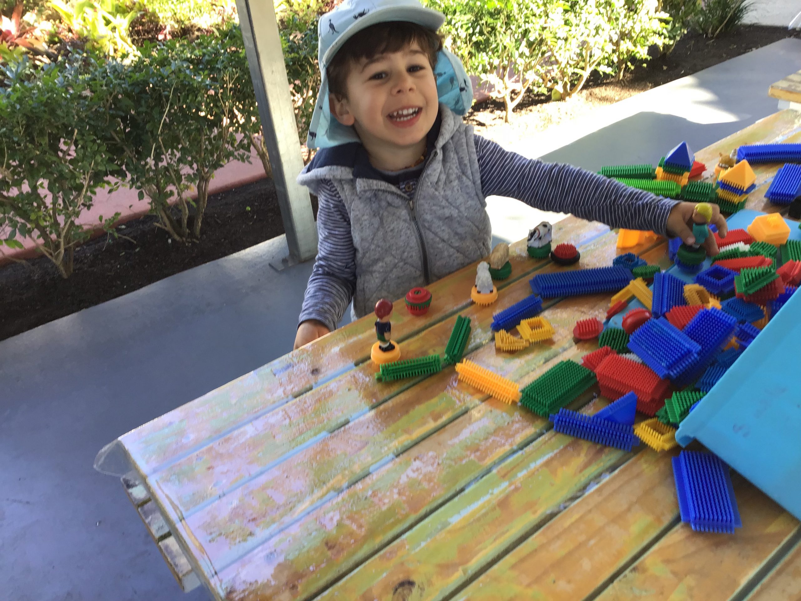 To fulfill children’s different needs and preferences, we also have a quiet area for outside play. We always have different activities in the quiet area, including reading, painting, music and dancing, dress-ups, puzzles, and building with blocks.