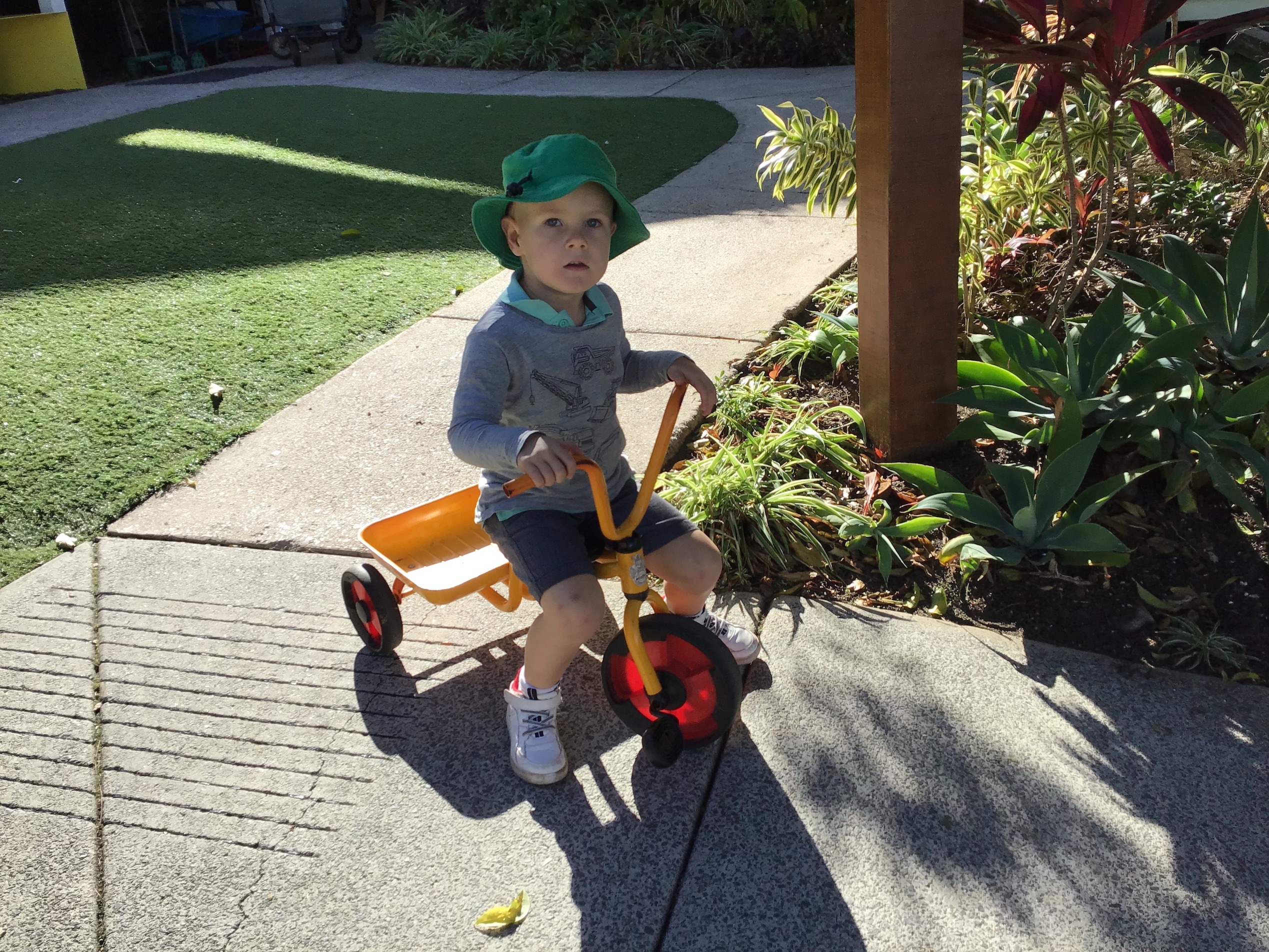 Our outdoor environment is an extension of our indoor environment. It gives the children opportunities to explore which provides them with many learning possibilities. The playground includes a bike track, a shaded teaching area which has multiple uses for small and large group play opportunities, a large covered sandpit, an extra-large timber fort which has lots of different areas to support many skills including a climbing wall, slide, clatter bridge, net bridge, monkey bars, and more.